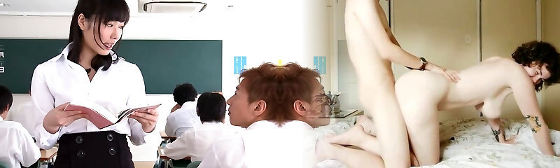 Japanese MILF, her virgin stepdaughter and her boyfriend in a real sensual three-way