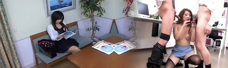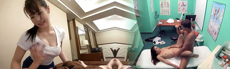 Japanese cute women enjoy male massage with massive dick