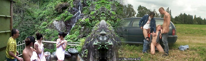 Japanese model has outdoor group sex action