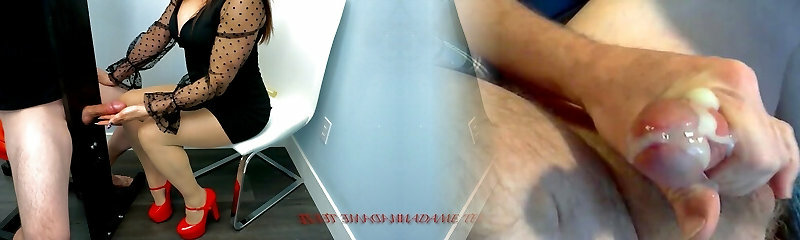 After peeling off her stocking she gave him a hot hand-job