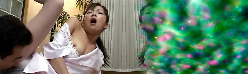 Japanese nurse Nono Mizusawa gives a blowjob and rails on the sofa