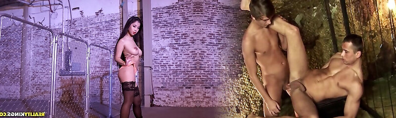 Chinese babe in fishnets Jade Kush pounded rear end style in a warehouse