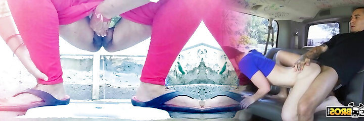 Asian tart pees behind car