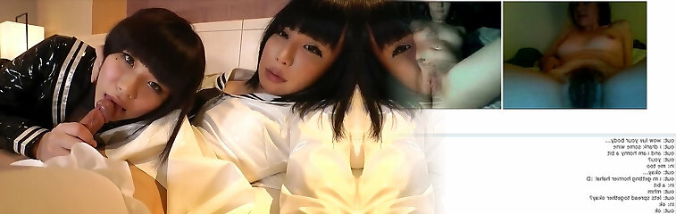 2 hot Chinese Tgirls sharing one big cock
