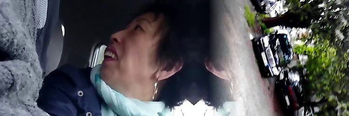 homemade, older japanese lady strokes cock in car