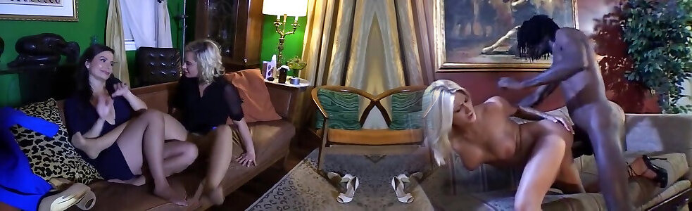 Mature Platinum-blonde Plumper in Pantyhose drizzles on Big Black Cock