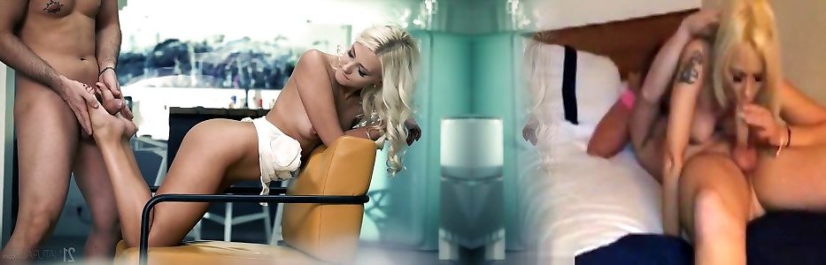 Blondie Helena Moeller takes jizz flows on her wonderful legs after a red-hot snatch porking gig