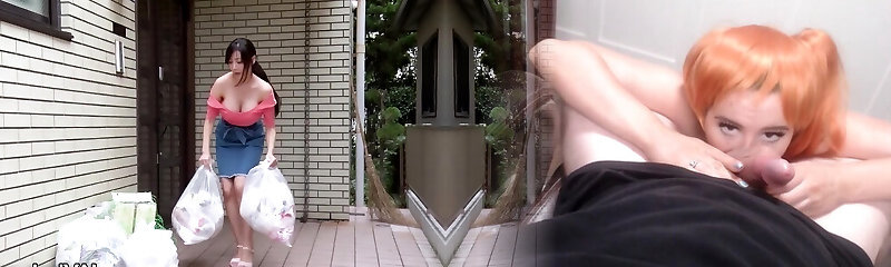 Chubby Japanese neighbor gives a titjob and rides his stiff penis