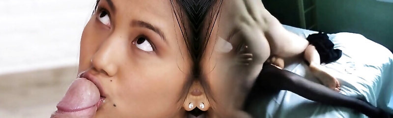 Massive cock deepthroat and sex for a short Asian college gal