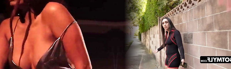 Dark-haired pornstar outdoor and cum in jaws