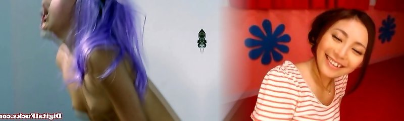 Tattooed Asian stud enjoys licking pussy which belongs to punk chick with purple hair