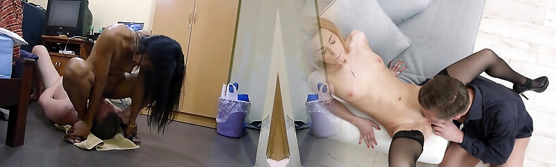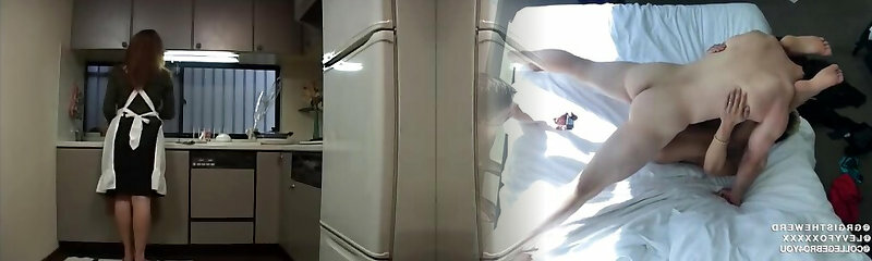 Maid gets horny while cleaning and fucks the boss