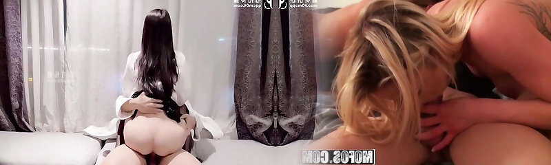 Horny slut Chinese girls serve their large dick boss with their big boobs and wet gash