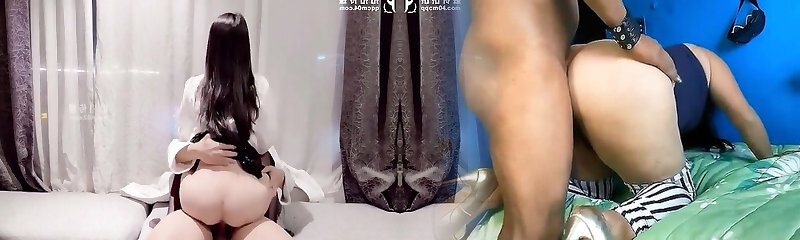 3P sex with BBW slut young Asian wife with ginormous breasts and ginormous butts cheating wtih her boss and workmate