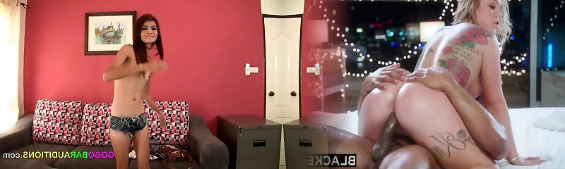 During casting Katt shows off her smooth-shaven pussy and gets