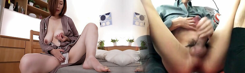 Pretty Japanese wench Hinata Tachibana jerks off tiny dick after torrid solo